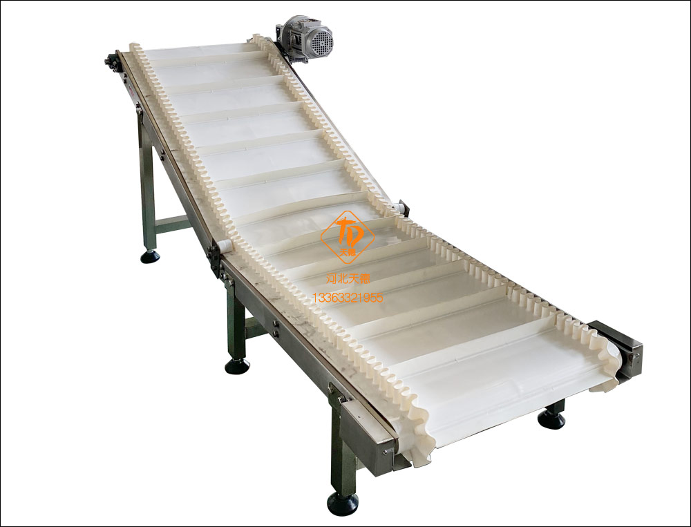 波形擋邊大傾角皮帶式輸送機:為一般用途的散狀物料連續(xù)輸送設(shè)備,具有波狀擋邊和橫隔板的輸送帶。適用于大傾角輸送;