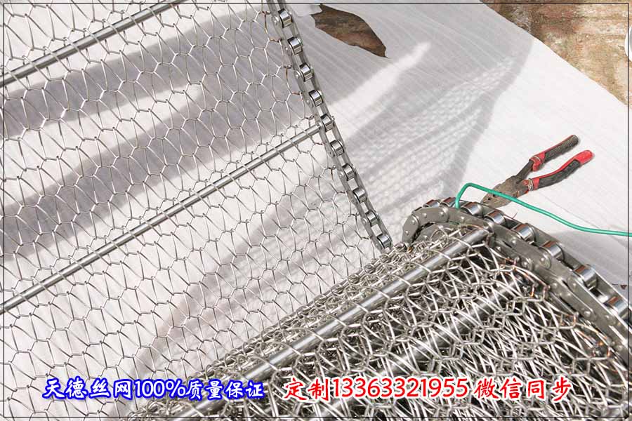 我們?cè)诮?jīng)過了7天的努力,成功的將輸送塑料件的鏈條不銹鋼網(wǎng)帶加工完畢,現(xiàn)在已經(jīng)裝車在發(fā)往物流的路上了,預(yù)計(jì)3天后會(huì)到達(dá)客戶的手里,還望山東的催總保持手機(jī)開機(jī)準(zhǔn)備接貨。 塑料件鏈條式不銹鋼輸送帶的詳細(xì)規(guī)格如下: 鏈條不銹鋼輸送帶的鏈條中心距為1.5米,總長(zhǎng)度在32米,材質(zhì)采用不銹鋼304材質(zhì),能夠防止在水中長(zhǎng)時(shí)間浸泡導(dǎo)致的生銹問題,鏈條式不銹鋼輸送帶的絲徑根據(jù)每米輸送帶載重在10斤左右定為1.2毫米,塑料件小的面積為10公分,因此輸送網(wǎng)鏈編織的孔為15*20毫米,鏈條節(jié)距為63.5毫米,不銹鋼桿直徑為15毫米,鋼桿與鋼桿之間的距離為20公分。鏈條驅(qū)動(dòng)的輸送網(wǎng)鏈運(yùn)輸平穩(wěn),在運(yùn)轉(zhuǎn)的過程中一會(huì)跑偏。