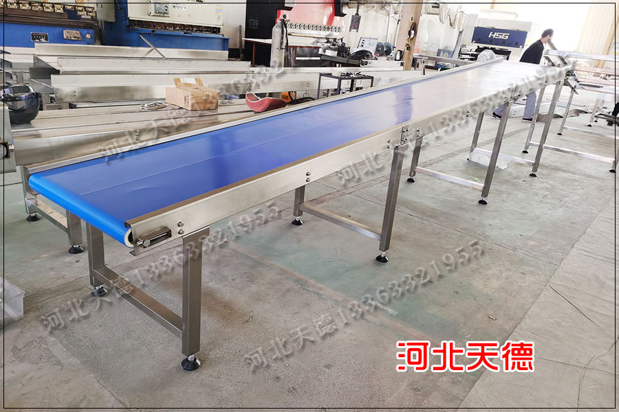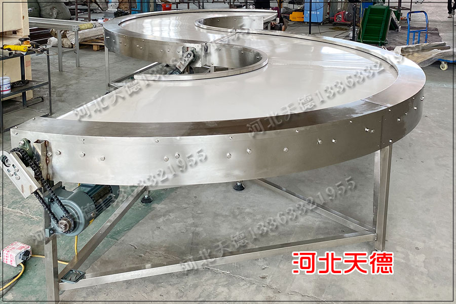 外圓弧板面,也就是滾筒的大端選用標(biāo)準(zhǔn)球面軸承,這種90度導(dǎo)輪式轉(zhuǎn)彎鏈條輸送機(jī)選擇是菱形座外球面軸承-205。其次整臺(tái)鏈條轉(zhuǎn)彎輸送機(jī)下方支撐架,機(jī)架選擇碳鋼、不銹鋼制作。整臺(tái)轉(zhuǎn)彎輸送設(shè)備高度與寬度需按客戶要求設(shè)計(jì),驅(qū)動(dòng)電機(jī)按照用戶需要設(shè)置在機(jī)架下面或機(jī)架上面。有速度調(diào)節(jié)要求要選擇變頻調(diào)速或選擇變速的減速電機(jī)。 皮帶轉(zhuǎn)彎機(jī)