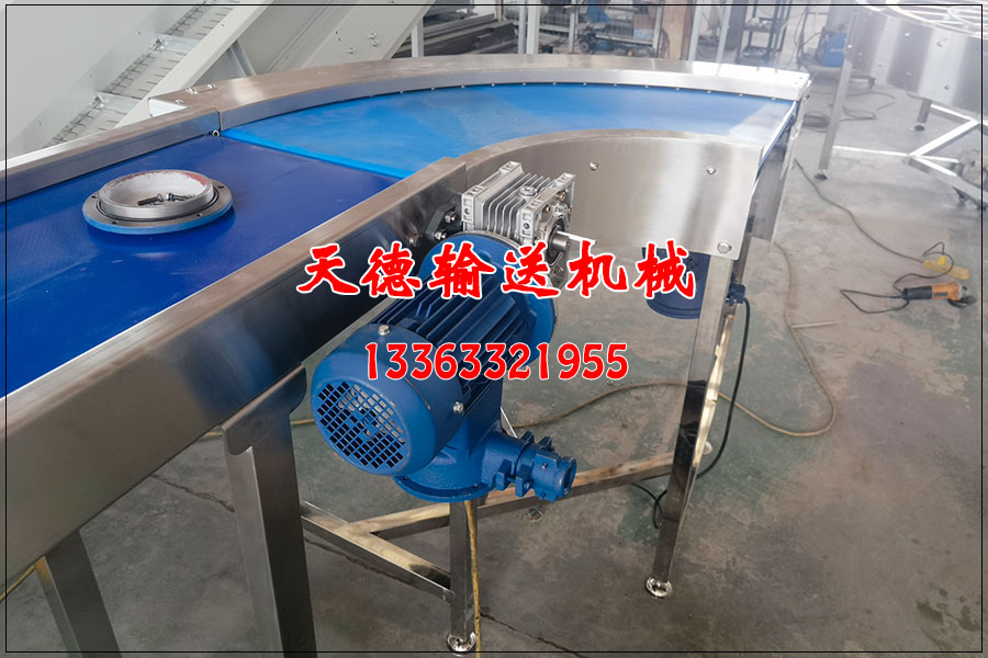 塑料食品罐輸送線轉(zhuǎn)彎皮帶輸送機(jī)