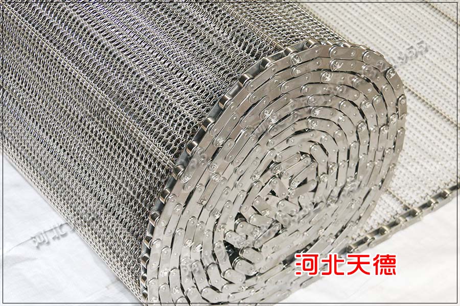 那么腐竹這么好吃,銷量這么好,如果是自然烘干肯定是供應(yīng)不足的,在生產(chǎn)線中我們就要借助烘干輸送設(shè)備來烘干,烘干腐竹我們要采用不銹鋼網(wǎng)帶輸送機(jī),網(wǎng)帶輸送機(jī)是采用網(wǎng)狀形式的輸送帶來傳送物品的,這種網(wǎng)狀輸送帶是采用不同絲徑的鋼絲來編織成大小不同的孔徑的,這個(gè)孔的大小又是根據(jù)產(chǎn)品的大小來編織的。烘干腐竹采用什么規(guī)格的網(wǎng)帶輸送機(jī)以及不銹鋼網(wǎng)帶的規(guī)格合適呢?河北天德與大家分享一下之前客戶訂購過的詳細(xì)規(guī)格: