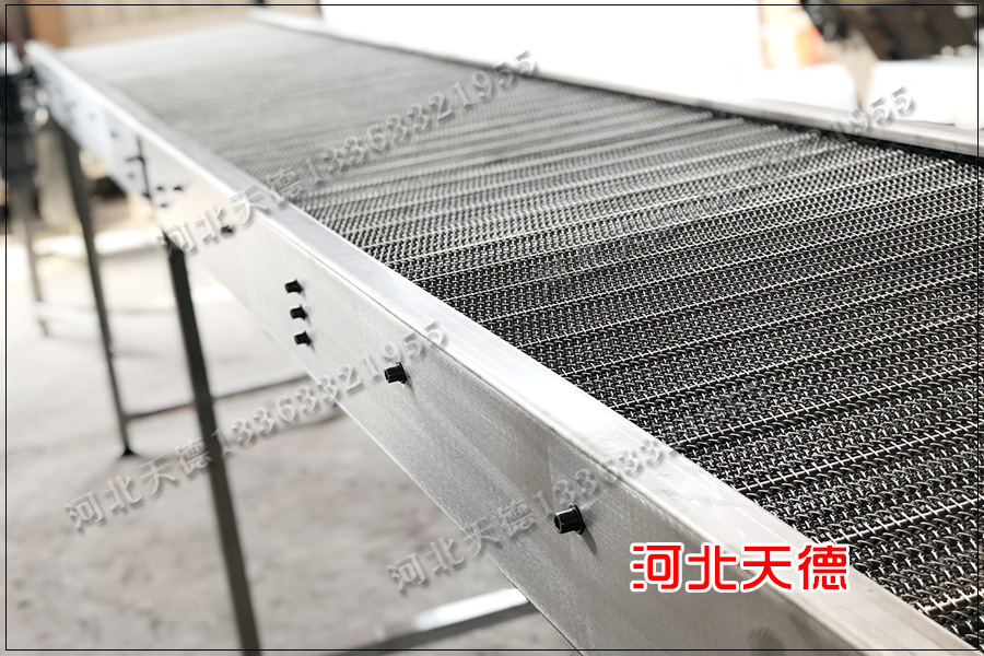 打撈水草使用的輸送機我們要采用不銹鋼304材質(zhì),網(wǎng)帶式爬坡不銹鋼輸送機我們要根據(jù)打撈的水草來定制具體的數(shù)據(jù),這里我們?yōu)闉榭蛻粼O(shè)計了一臺高度為半米,長度為五米,寬度為800毫米的輸送機,共計三臺。河北天德絲網(wǎng)公司為大家設(shè)計爬坡網(wǎng)帶輸送機,我們廠家保證能讓客戶購買到經(jīng)濟實惠的性價比高的不銹鋼輸送機。