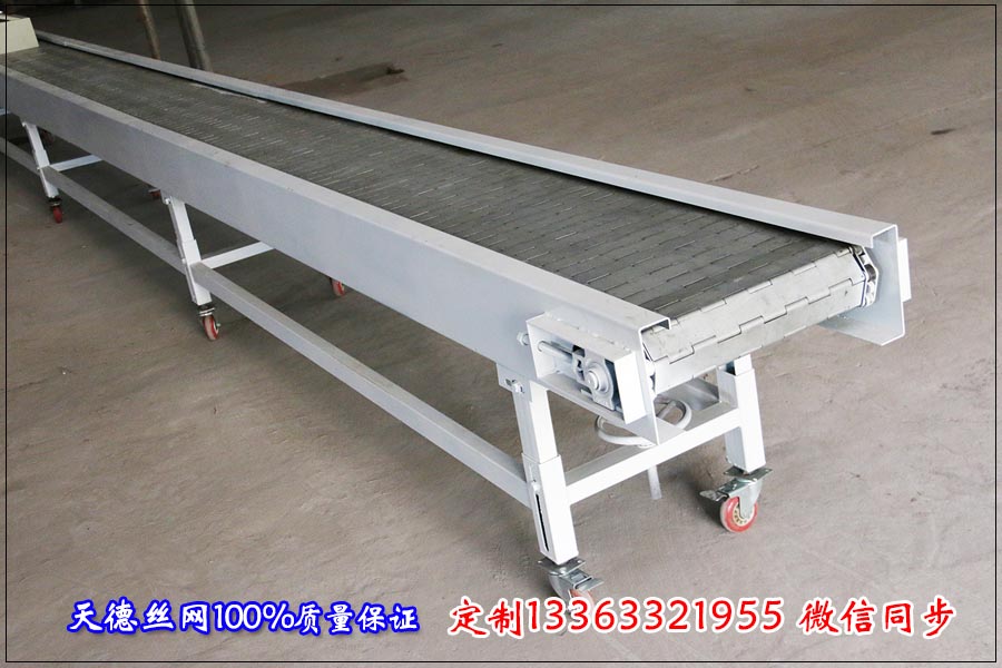 四、鏈板輸送機(jī)采用不銹鋼鏈條傳動(dòng),速度安穩(wěn),能確保的同步運(yùn)送。
