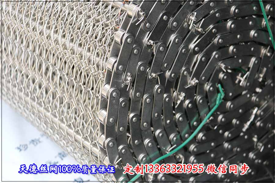鏈條網(wǎng)帶簡介:鏈條式網(wǎng)帶是由鏈條驅(qū)動的輸送網(wǎng)帶,一般都由鏈條帶動小軸再帶動網(wǎng)帶運行。 網(wǎng)帶都采用軋牙串條、左右網(wǎng)條二根串,并大小網(wǎng)條連接而成,大網(wǎng)條內(nèi)穿進小軸,小軸二端穿入鏈條孔,從而達到鏈條驅(qū)動輸送網(wǎng)帶。鏈條網(wǎng)傳動平穩(wěn)、傳動力矩小。