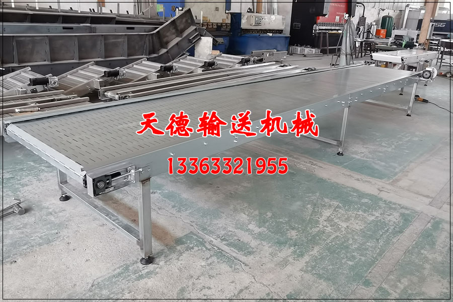 以后每年將潤(rùn)滑油換一遍就好了。潤(rùn)滑油太多可能引發(fā)減速箱發(fā)熱,電機(jī)負(fù)荷太大導(dǎo)致輸送機(jī)電機(jī)保護(hù)開(kāi)關(guān)跳開(kāi)。潤(rùn)滑油太少會(huì)引發(fā)減速箱發(fā)熱,噪聲增加與減速箱絞死而報(bào)廢。 循環(huán)板鏈線(xiàn)輸送設(shè)備 高裙邊鏈板提升機(jī)、循環(huán)板鏈線(xiàn)輸送設(shè)備安裝事項(xiàng) 高裙邊鏈板提升機(jī)平面設(shè)計(jì)應(yīng)當(dāng)保證零件的運(yùn)輸路線(xiàn)短,生產(chǎn)工人操作過(guò)程更加的方便,鏈條輸送機(jī)利用生產(chǎn)面積,并選擇流水線(xiàn)安裝之間的相互銜接。為完成這些要求,在高裙邊鏈板提升機(jī)平面布置時(shí)應(yīng)考慮流水線(xiàn)的形式、流水線(xiàn)安裝工作地的排列方法等問(wèn)題。 高裙邊鏈板提升機(jī)安裝時(shí)工作地的排列要符合工藝路線(xiàn),在工序有兩個(gè)以上工作地方時(shí),要選擇同一工序工作地的排列方法。