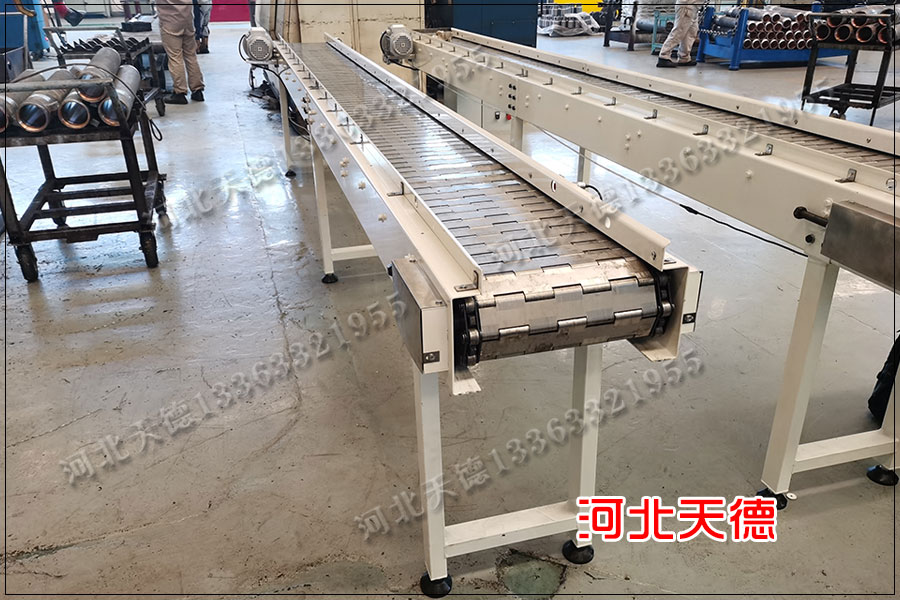 鋼板鏈條鏈板輸送機(jī)作為輸送設(shè)備中更常見的一種輸送機(jī)型,鋼板鏈條傳送輸送機(jī)以其運(yùn)行平穩(wěn)、輸送能力大、牽引鏈強(qiáng)度高等特點(diǎn)而為人們所熟知。 鏈板式輸送機(jī)絕大多數(shù)僅僅應(yīng)用于生產(chǎn)活動(dòng),且以重工業(yè)為主,在各種摩托車、汽車的總裝輸送以及其他重量級設(shè)備的輸送,通過流水線操作,對于各種 大型設(shè)備的配置工藝進(jìn)行調(diào)配,盡更大可能得合理分配每一道工序。 鏈板式輸送機(jī)等機(jī)械設(shè)備,創(chuàng)造了一個(gè)又一個(gè)奇跡。 鏈條傳送輸送機(jī) 在現(xiàn)代化工業(yè)生產(chǎn)中,鏈條傳送鏈板輸送機(jī)功不可沒。