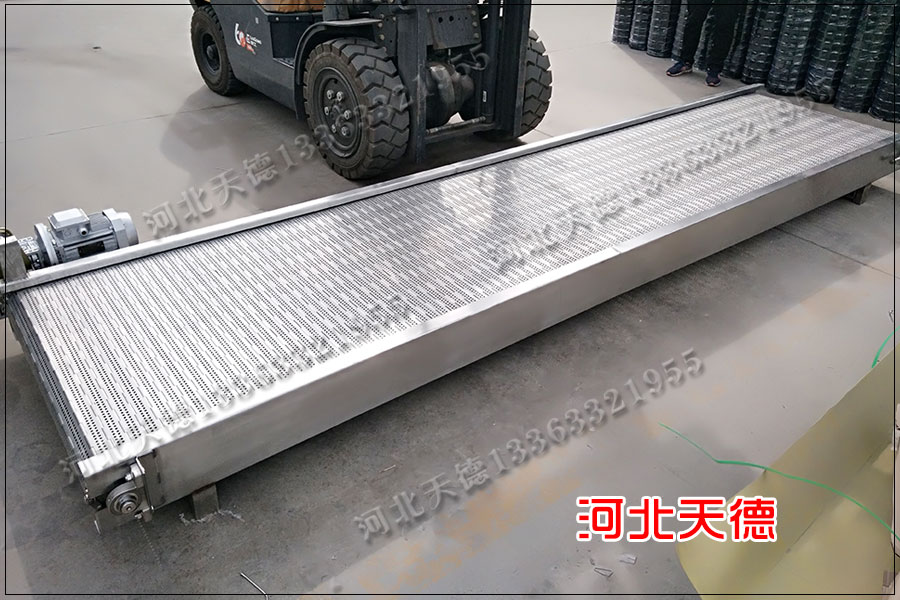 尾部裝配的螺旋拉緊裝置應(yīng)調(diào)整適宜,保持鏈板輸送帶具有正常工作的拉力??垂苋藛T觀察輸送帶的工作情況,局部損壞的地方,應(yīng)視其破損程度(既是否 對(duì)生產(chǎn)造成影響)而決定是不是立即更換或待檢修時(shí)更新的。對(duì)拆下的鏈板輸送帶應(yīng)視其磨損程度而另作它用。