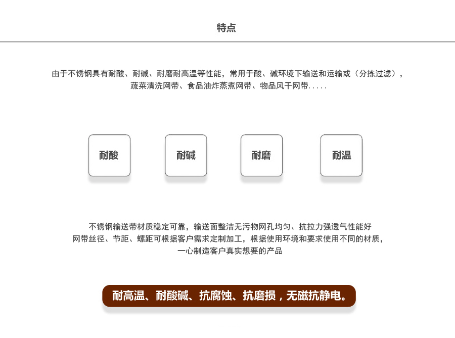 不銹鋼網(wǎng)帶屬于非標準件,我們將根據(jù)你提供的規(guī)格長寬,材質(zhì),絲徑,編制結(jié)構(gòu)尺寸,支軸直徑,支軸間距,鏈條型號等數(shù)據(jù)核算成本和制作.