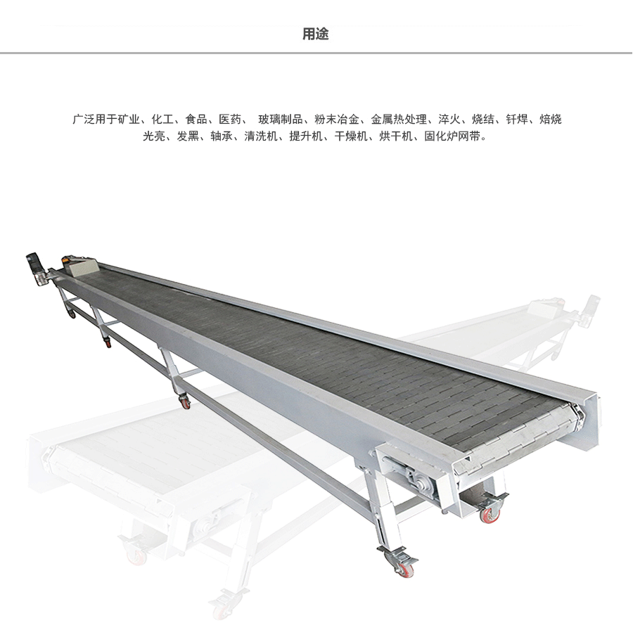 鏈板輸送帶應(yīng)用:鏈板式網(wǎng)帶廣泛用于玻璃制品行業(yè)的退火爐鏈板、烤花爐鏈板等。食品加工行業(yè)、脫水蔬菜、速凍食品單凍機前處理鏈板、鏈網(wǎng)。粉末冶金、金屬熱處理、淬火、燒結(jié)、釬焊、焙燒、光亮、發(fā)黑、軸承、滲碳高溫爐鏈板、擋板式鏈板、涂裝烘干線輸送鏈板、泡沫鎳還原生產(chǎn)線鏈板,清洗機、提升機、干燥機、烘干機、固化爐鏈板。各輸送工藝鏈網(wǎng)、鏈板、速凍、烘烤機械的平面輸送、螺旋輸送、食品機械的清洗,烘干、降溫、蒸煮等玻璃機械的退火、烤花、輸瓶等。