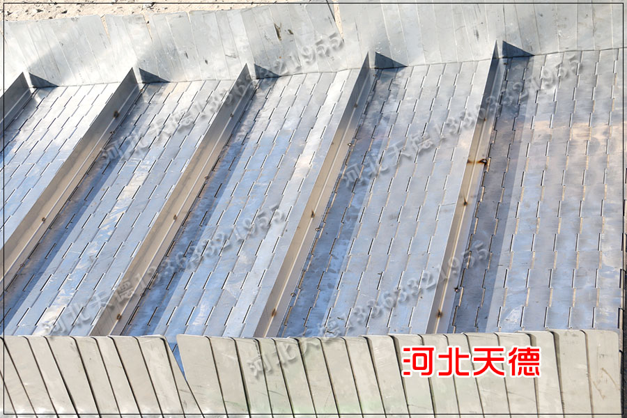 鏈板表面每隔150毫米安裝一個橫向擋板用來提升產(chǎn)品使用
