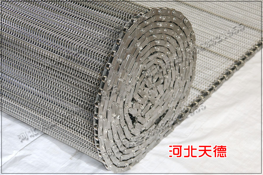 輸送機(jī)網(wǎng)帶采用鏈條傳動的網(wǎng)帶通常是鋼絲編織的,鋼絲直徑由1.0-3.0毫米。
