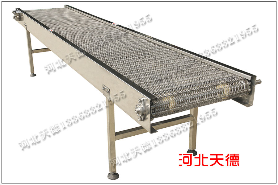 山西陽泉客戶定制的不銹鋼網(wǎng)帶輸送機,這臺輸送機用于高溫中使用,因此整機采用不銹鋼304材質(zhì),輸送機長度5米,總寬度650毫米,高度大概半米,采用1.5千瓦電機,配電減速機變頻器。