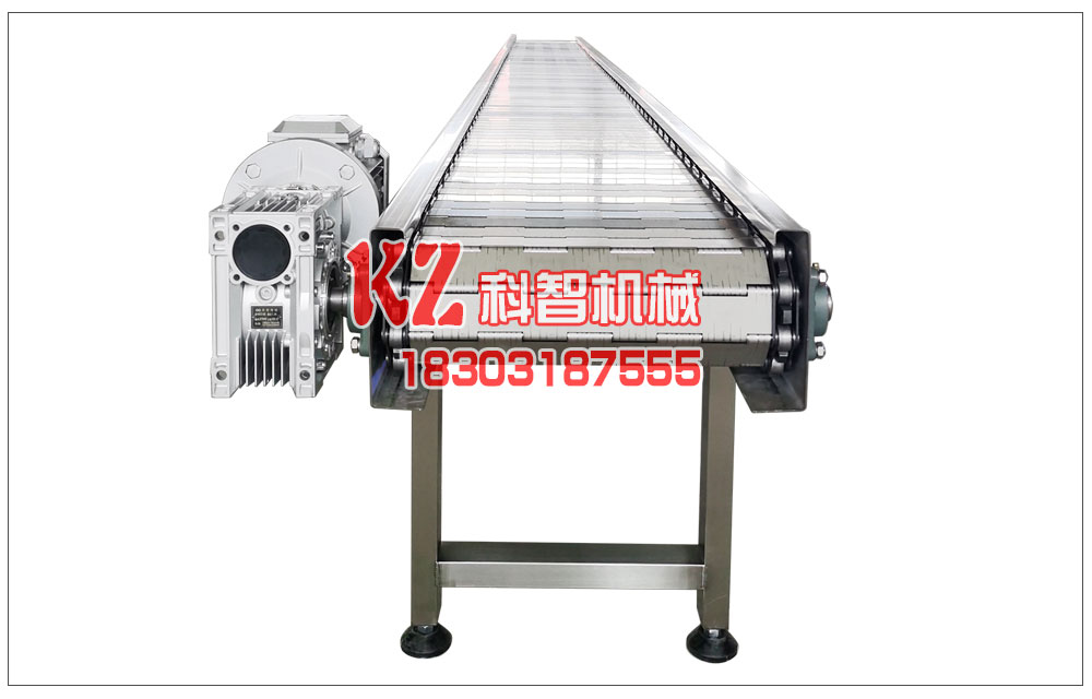 雞腸子輸送鏈板擋邊輸送機是由鏈板輸送帶、擋邊、橫隔板三部分組成;擋邊起防止雞腸子測滑撒落的作用;為便于繞過滾筒,擋邊設(shè)計成波紋狀或者直行的都可以的;橫隔板的作用是用來提升承托物料,為了實現(xiàn)大傾角輸送,采用T型TC...