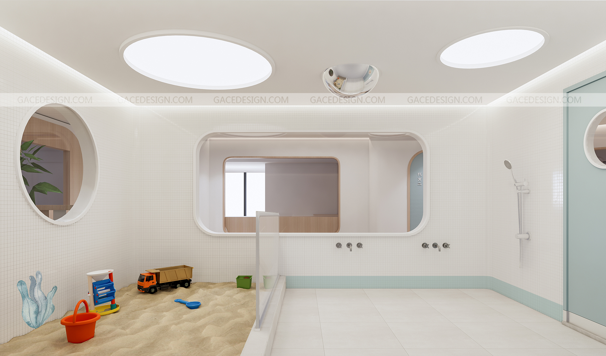 設計思路:通過有溫度感的設計,干凈的空間,但又能夠讓使用者有舒服的體驗,設計不是堆砌造型,應該讓使用者在里面待的狀態可以很放心,溫暖。通過空間里面的大小細節,材質,燈光,人與人之間的眼神和交流而感到幸福。通過具備挑戰性的區域讓孩子們有各種情感上的變化。而且我們在室內設計了一個微縮園林,希望孩子可以與自然環境緊密相連。