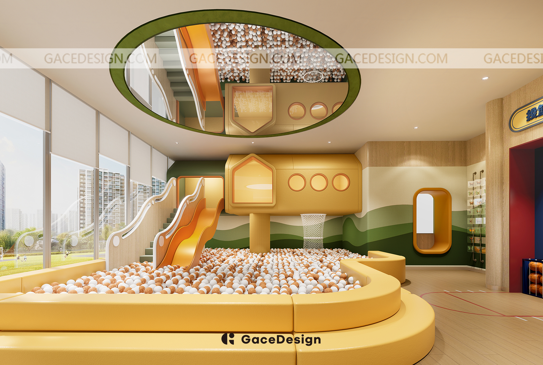 ?動態(tài)區(qū)域則充滿了各種充滿樂趣的設(shè)施,特別是為低齡兒童設(shè)計了幼童區(qū)。我們還設(shè)置了滑梯、球池和沙池區(qū),孩子們可以在不同的區(qū)域里進(jìn)行角色互動,釋放他們的精力。對于稍大一點的孩子,還有攀爬墻和籃球供他們挑戰(zhàn)身體協(xié)調(diào)性和體能
