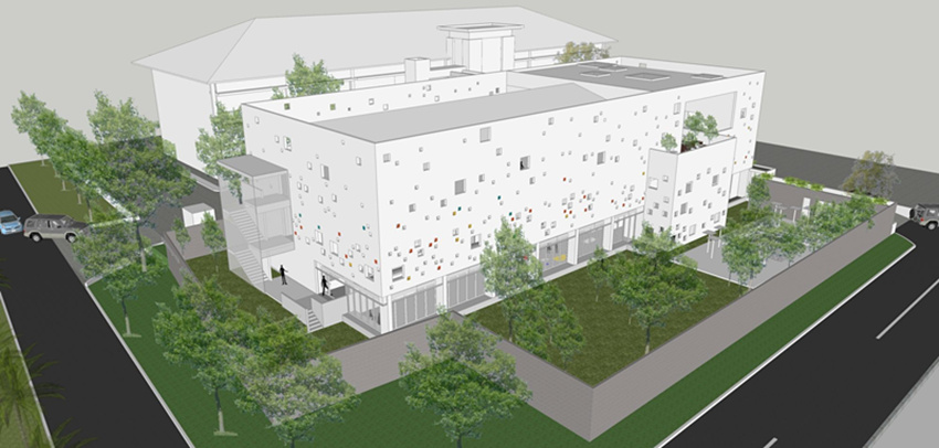 由于缺乏可用的建設用地,則決定在已建成的區域上建設,只留下在地面層必要的開放綠地作特定用途。另一個主要的挑戰則是,新建筑應該考慮車輛和人員的流動和交叉:從下車到建筑和建筑之間。綜合體和在建筑物內的各種活動應根據功效、人類&車輛交通的暢通,在不同的用戶/用戶組,控制和維護,以及使用的靈活性的層面進行管理。