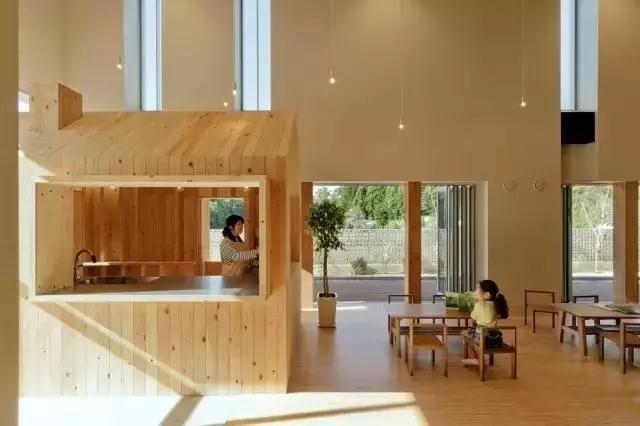1、把廚房設在幼兒園內部:采用這種布局方式對孩子們的生活用房會造成干擾,廚房功能不能很好的得到滿足,流線容易混亂容易受到層高的限制,改善的方法是讓孩子不到廚房的送餐口活動,這種方法使用在小型幼兒園的布置。
