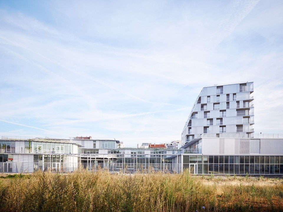 學(xué)生宿舍的設(shè)計基于4個主要建筑學(xué)原則。首先,項目作為一個整體要具有合理的功能(結(jié)構(gòu)和技術(shù)空間的疊加),同時還要緊湊。距離其他功能分區(qū)的距離使它有所脫節(jié),具有一定的獨立性。由于宿舍區(qū)被設(shè)置在盡可能北的方位,最窄的立面朝向Jean-Jaurès大街,平臺不會阻擋陽光進入室內(nèi)。這也保證了操場能夠享受足夠多的陽光。
