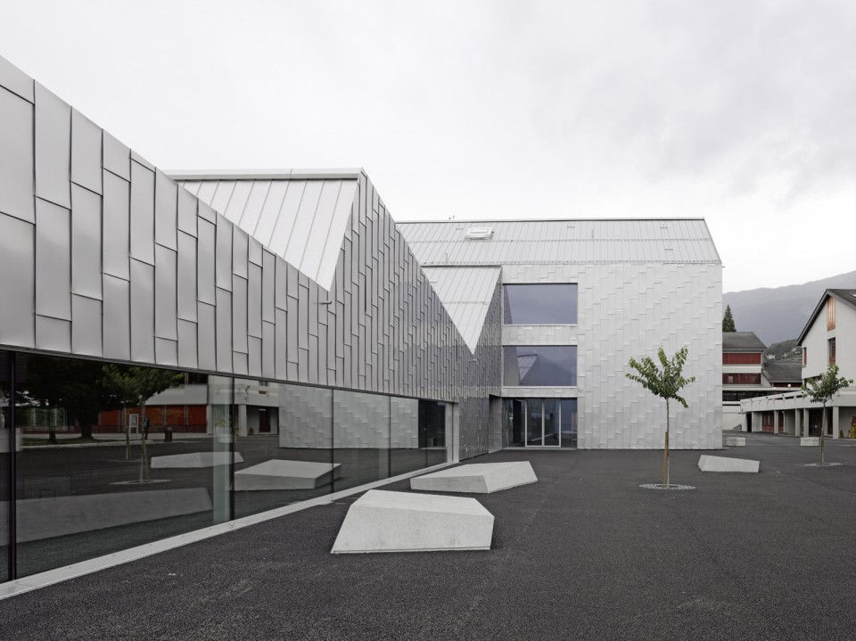 位于瑞士西南部瓦萊州首府Sion附近群山環抱的小村落Savièse之內,與群山遙相呼應坐落著教育設施,整座學校是由兩個巨大的體量組成,分為小學和幼兒園,另一個則是體育館。相互垂直的建筑形成了一個 L型,在契合現有室外活動場地的同時也圍合出一個可以眺望山谷與葡萄田地的小院落。極富趣味性的屋頂覆蓋了兩個空間,學校部分的屋頂更為傳統而體育館的屋頂則更隨意靈動。(幼兒園設計)