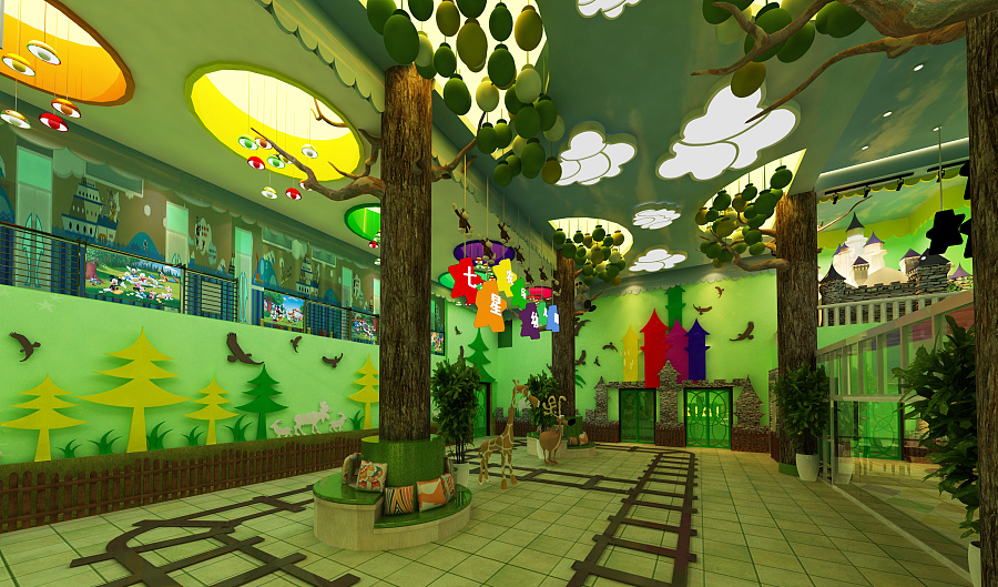 強(qiáng)化色彩,吸引眼球:由于兒童對(duì)色彩和造型比較敏感,鮮艷活潑的顏色及多樣化的造型更能吸引兒童的眼球,同時(shí)還可以提高孩子的認(rèn)知能力。(幼兒園室內(nèi)設(shè)計(jì))